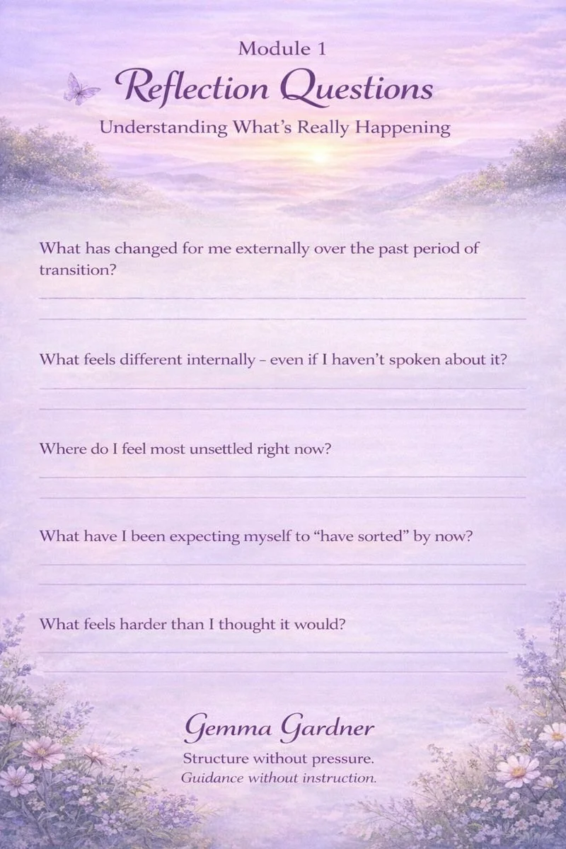 Transition isn’t a problem to solve, it’s a process to navigate. Here, we start by grounding what you’re experiencing so the pressure and noise around it can ease.