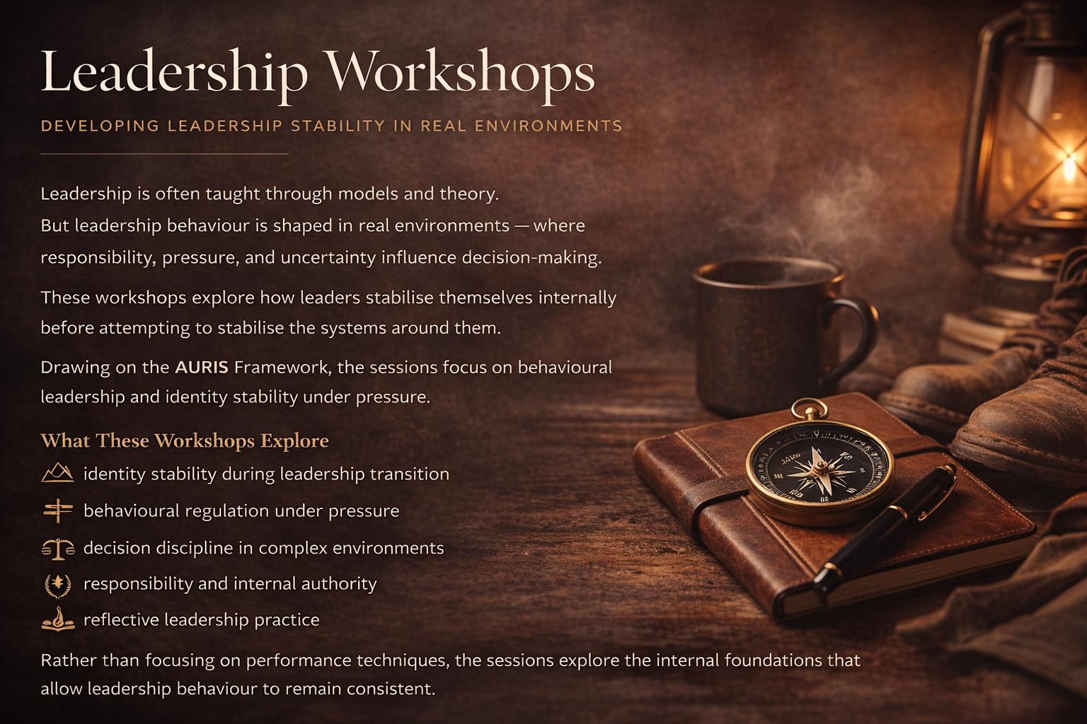 Rather than focusing on performance techniques, the sessions explore the internal foundations that allow leadership behaviour to remain consistent.